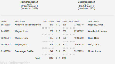 | RWK1 LG2 | RWK2 LG2 | RWK3 LG2 | RWK4 LG2 | RWK5 LG2 | RWK6 LG2 | — | Endstand – Gesamt & Einzel |