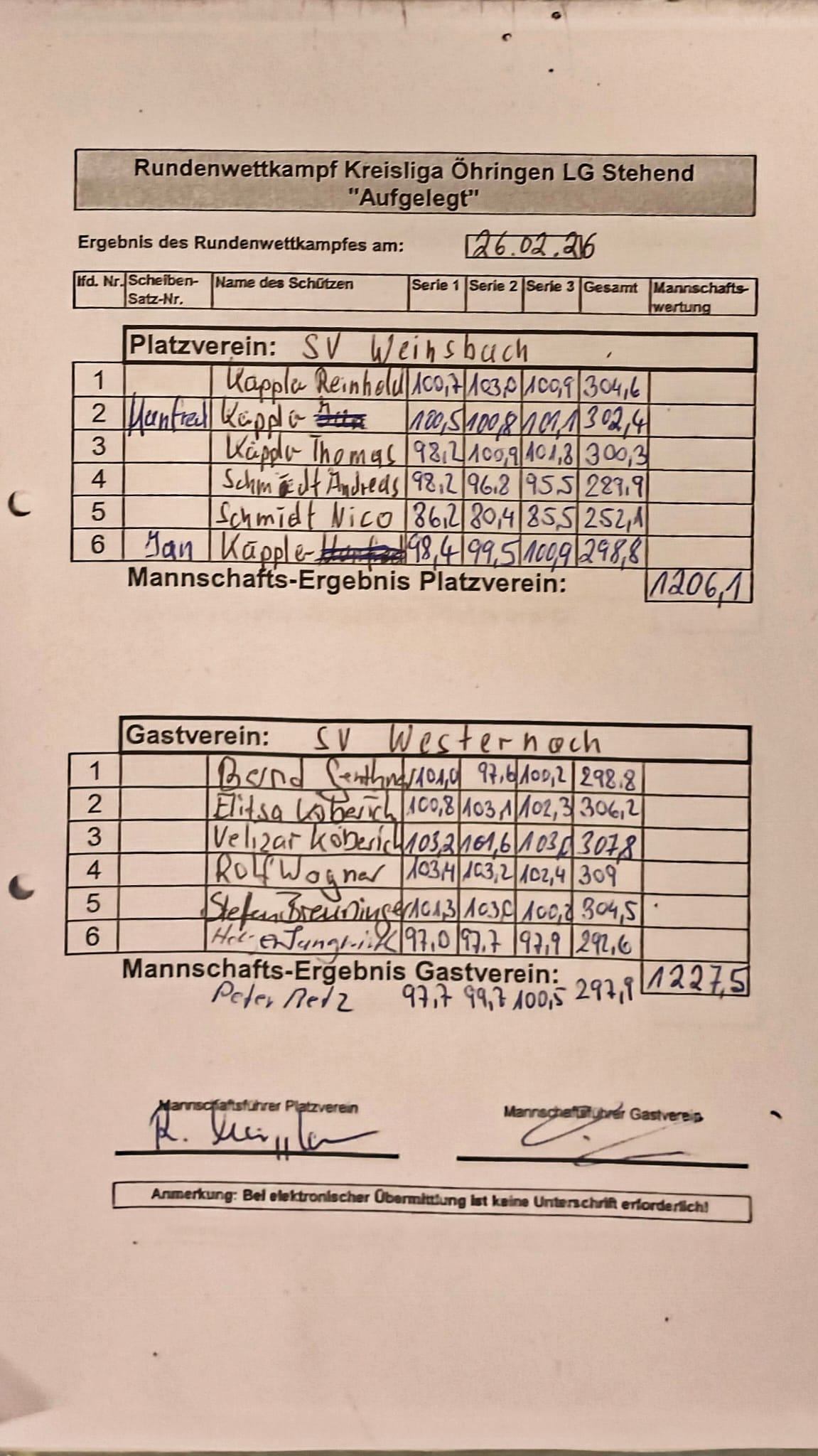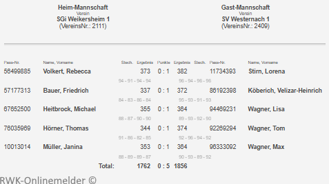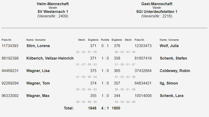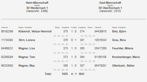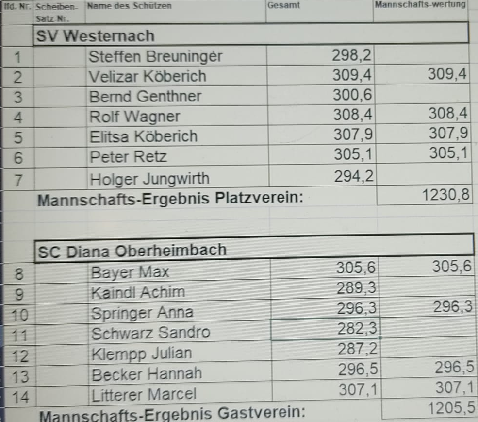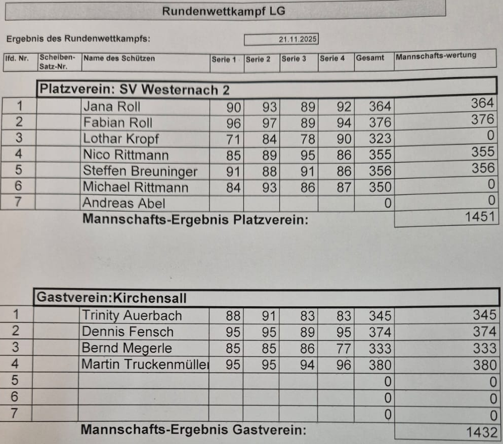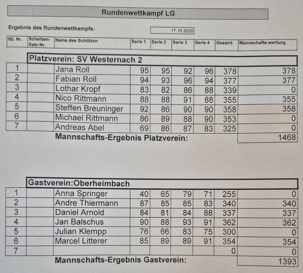 RWK Ergebnisse die nur ausschließlich von anderen Vereinen Geschossen werden (ohne eine Mannschaft aus Westernach), werden hier nicht aufgeführt.
